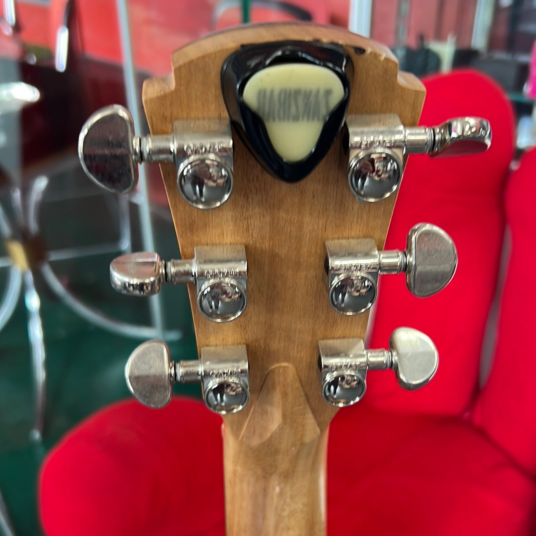 - All solid timber cutaway grand auditorium with internally carved top and back