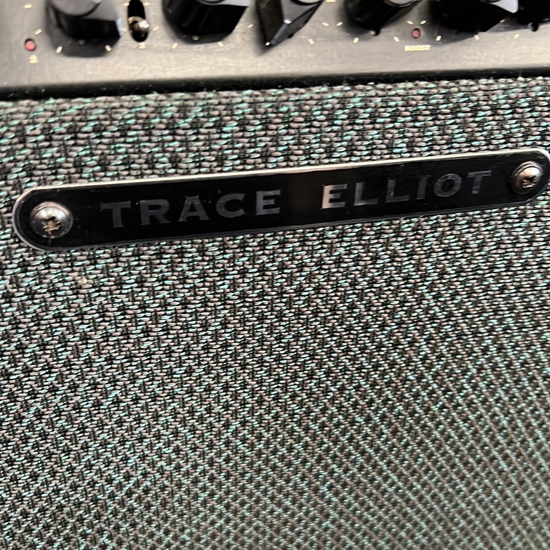 This amp is a true sleeper! Made in the UK and a cut above most amps in its class. Trace Elliot is known for their exception SS tone and design, and this affordable combo is no exception. Nice and loud at 80 watts pushed through a Celestion Vintage 30 12″ speaker. Two channels with standard volume and EQ; one clean, one gain channel with a nice boost option along with the wide gain setting. Built in reverb, effects loop and presence control. Included is the footswitch for the gain channel. In very good shape, with only some minor cosmetic blemishes (some small tears in the tolex, some discoloration)
